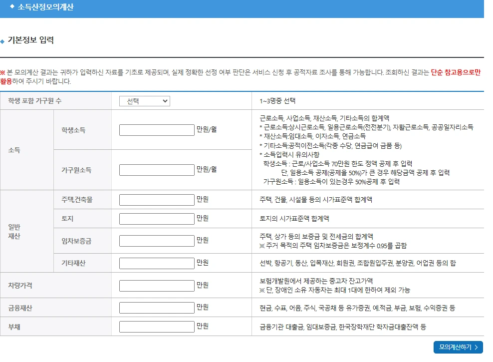 - 기타 조건: 다자녀 가구(셋째 이상)는 소득분위와 상관없이 등록금 전액 지원
