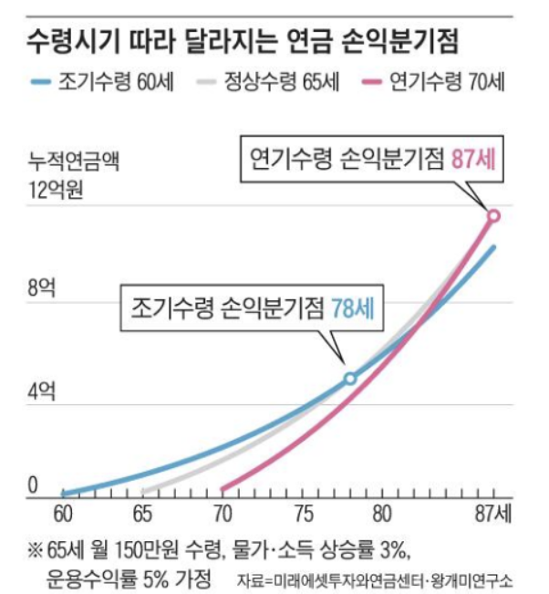 즉, 76세 전에는 조기수령이 유리하고, 이후까지 오래 산다면 정상수령이 더 나은 셈이에요.