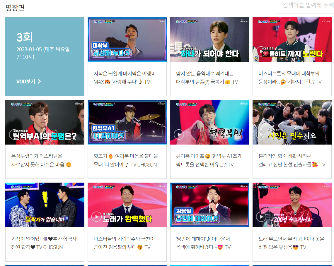 참가자 전부의 소개 영상이 티비조선 홈페이지에 있으니 관심 가는 사람의 소개 영상을 미리 보시고 누가 우승할지 미리 점쳐보시는 것도 좋겠습니다.