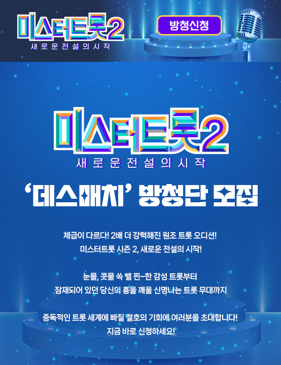 너무 많은 사랑을 받은 미스터트롯 시즌1 기억나십니까? 수많은 트롯 스타를 배출해낸 프로그램이기도 합니다. 이제 곧 미스터트롯2가 방영이 될 예정인데 심사위원과 방송일정에 대해 안내해드리겠습니다. 거기에 더불어 방송권 신청방법에 대해서도 알려드립니다.