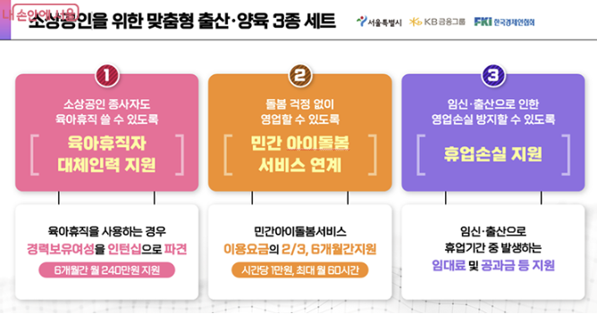 - 문의처: 1660-0435 (KB손해보험 전담센터), 카카오톡 플러스 채널 (서울시 소상공인 임신 출산 휴업 보험)
