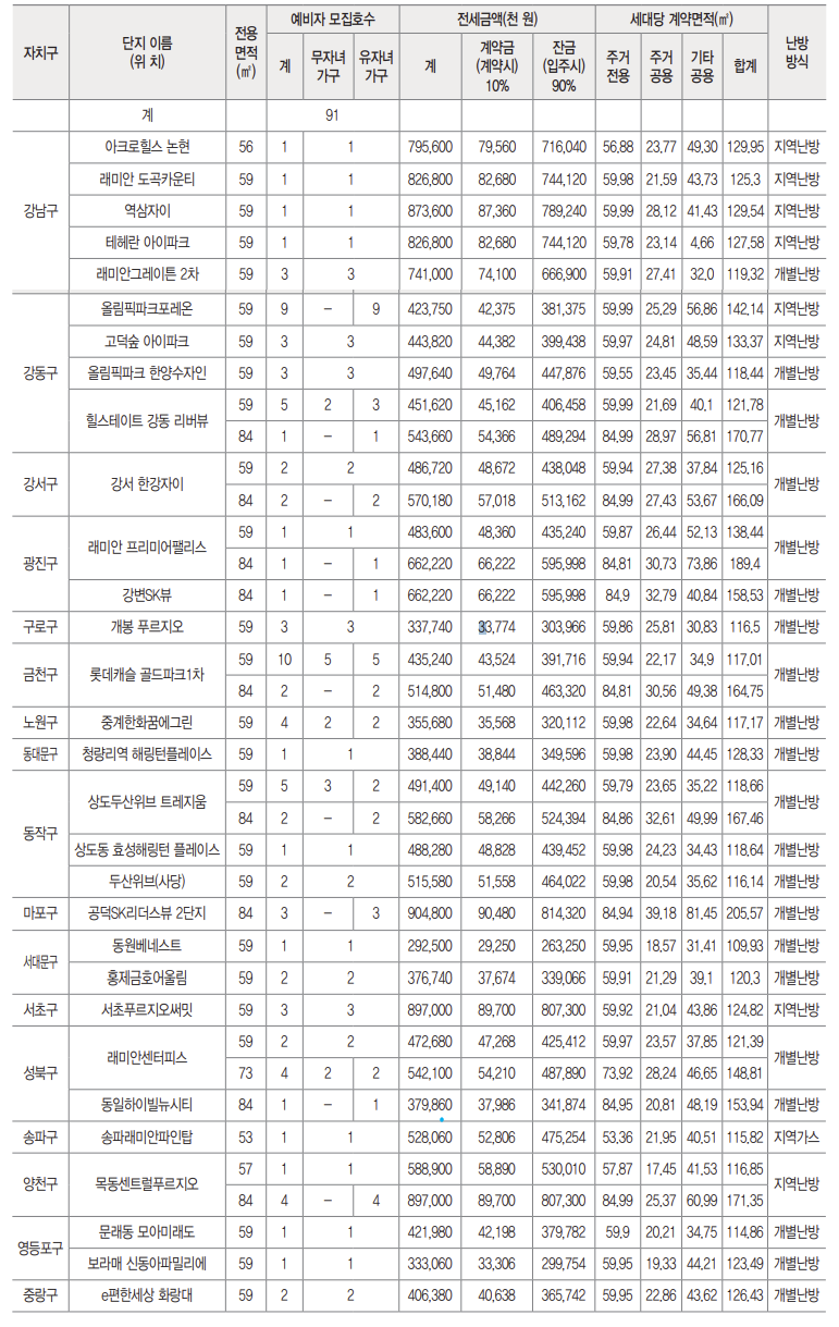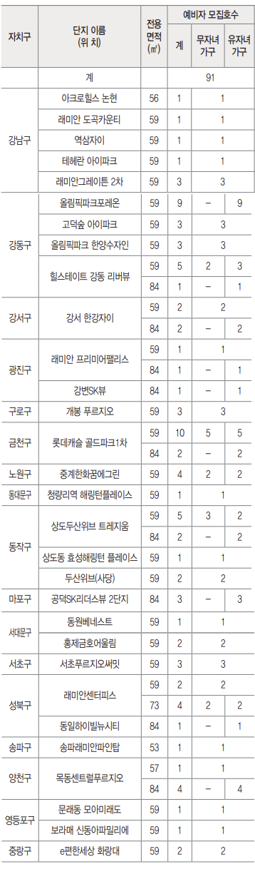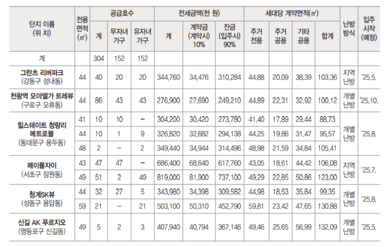 - 신규 공급 지역: 강동구, 구로구, 동대문구, 서초구, 성동구, 영등포구