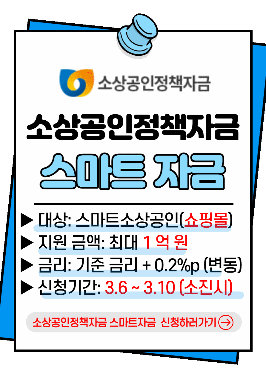 이번엔 소상공인정책자금 중 직접대출에 해당되는 스마트자금에 대한 내용에 대해서 안내해 드렸습니다. 해당되시면 빠른 신청 필수입니다.