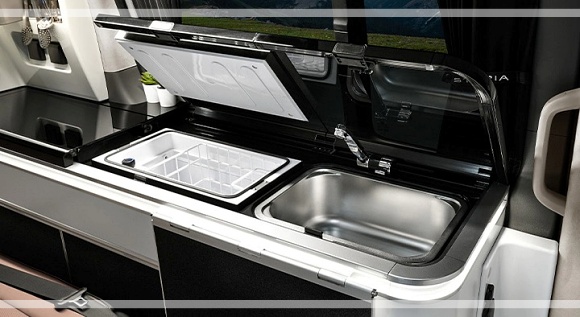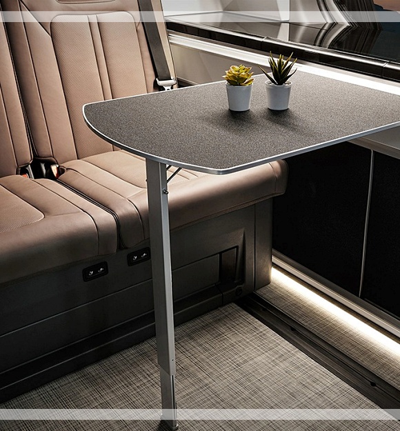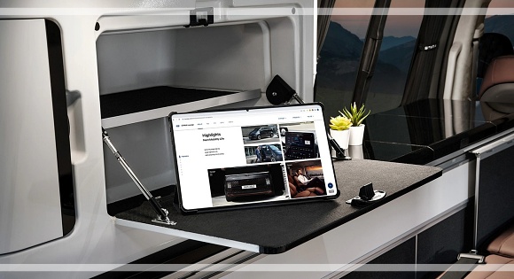 캠퍼 4는 ▲12.1인치 접이식 통합 컨트롤러와 모니터 ▲3열 리클라이닝 벤치 ▲슬라이드 후방 테이블 ▲외부 전원 장치 ▲청수 통 70L와 오수통 40L ▲36L 빌트인 냉장고와 싱크대 등 캠핑에 필요한 사양들을 추가로 적용했습니다.
