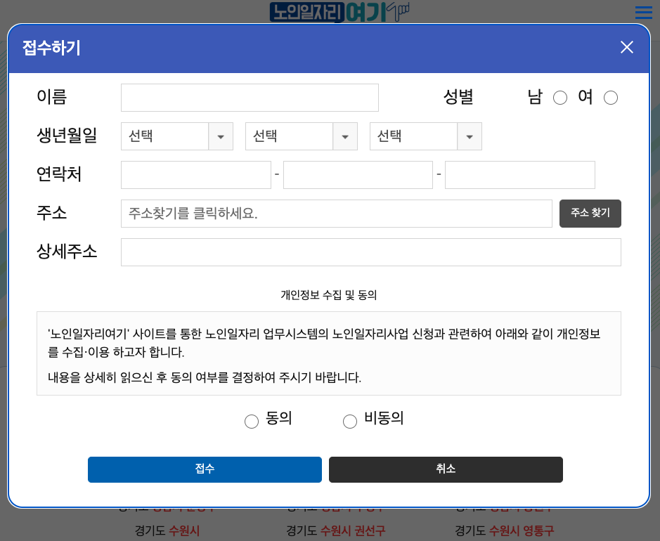 복지로와 정부 24에서는 우선 로그인을 해야지만 각 지자체별 모집 내용을 볼 수 있는데, 노인일자리 여기 같은경우는 로그인을 하지 않아도 모집공고를 보고 접수까지 가능하기 때문에 노인일자리여기를 우선 추천 드립니다. 또한 홈페이지도 복잡하지 않게 잘 만들어져있어 신청하기도 간편합니다.