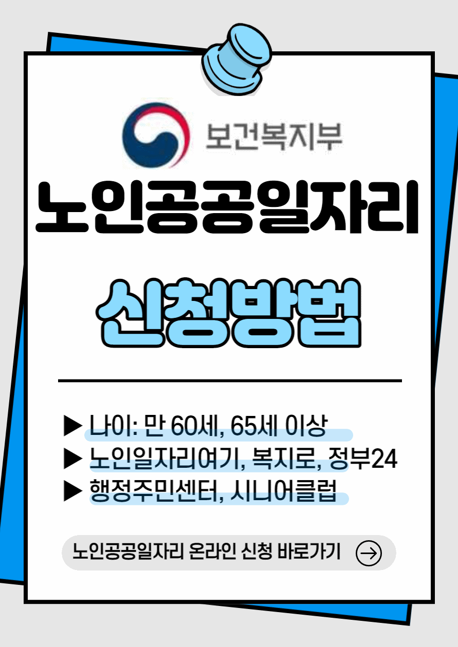 2. 노인일자리 수행기관 (시니어클럽, 대한노인회, 노인복지관 등)에 방문 신청 가능.