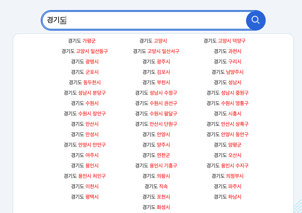 2. 경기도만 입력해도 전체가 나오니 골라서 눌러도 됩니다.