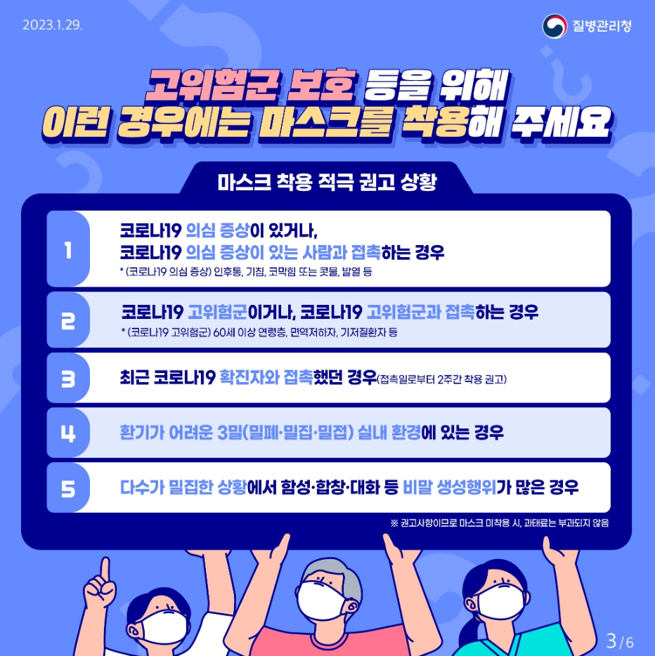 이번엔 1월 말부터 시행되는 실내마스크 착용 의무화 기준에 대해서 알아보았습니다. 권고가 의무로 바뀌었지만 날씨도 춥고 귀찮기도 해서 외부에서는 대부분 차고 다니시지 않을까 합니다. 뒤늦게 확진되지 마시고 정부에서는 아직까지도 적극 권고를 하기 때문에 각별한 주의를 하셔서 건강을 챙기시기를 바랍니다.