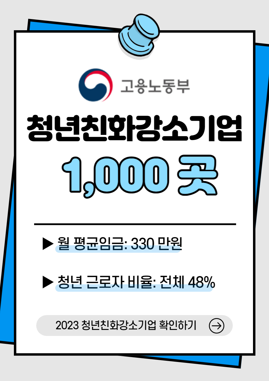 이번엔 2023년 청년친화강소기업이 1000곳이 선정되었다는 소식을 안내해드렸습니다. 취업을 준비하고 있다면 한 번 확인해보시는 것을 추천드립니다.