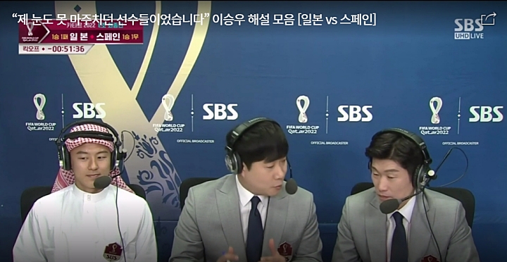 배성재, 박지성, 이승우 의 조합이 잘 어울리는 중계진 입니다. 이승우의 재치 있고, 경험을 살린 해설이 이번 월드컵에서 많은 재미를 주었습니다.