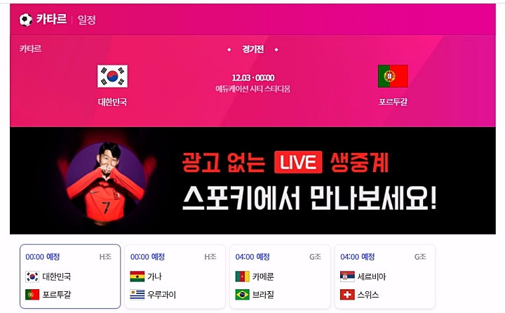 이번 2022 카타르 월드컵에서 대한민국의 마지막 경기가 될 수도 있는 포르투갈전입니다. 반드시 이길 수 있도록 시청하시면서 다 같이 응원해주시면 감사하겠습니다. 이상으로 축구 중계방송 인터넷 생중계 보는 방법에 대해서 안내해드렸습니다.