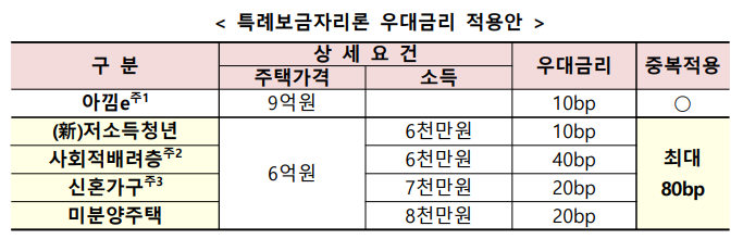 ▶ 신혼가구: 6억 원 이하& 혼인신고일로부터 7년 미만 (20bp)