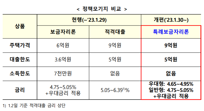 가장 큰 차이점은 소득한도의 제한이 없다는 것과 금리가 더 줄어들었다는 점이 있겠습니다.