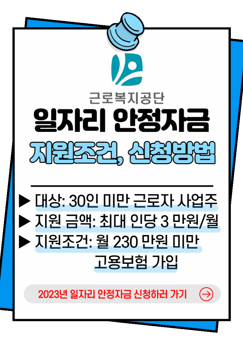 이번엔 2023년 일자리 안정자금에 대한 내용에 대해서 알아보았습니다. 해당이 된다면 무조건 신청하셔야 하겠습니다.