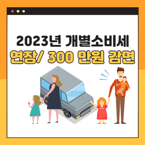 2023년 연장된 자동차 개별소비세에 대해서 간략하게 알아보았고, 새롭게 추가된 3인 다자녀에 대한 300 만원 감면 혜택에 대해서 안내해 드렸습니다.