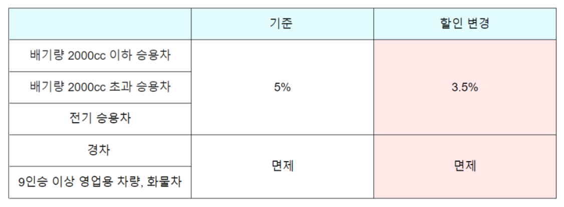※ 경차 또는 9인승 이상 승합차는 기존부터 개별소비세 해당 없음.
