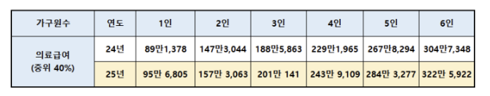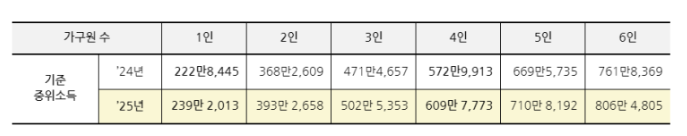 - 4인 가족 기준: 월 512만 원으로 전년 대비 6.42% 상승