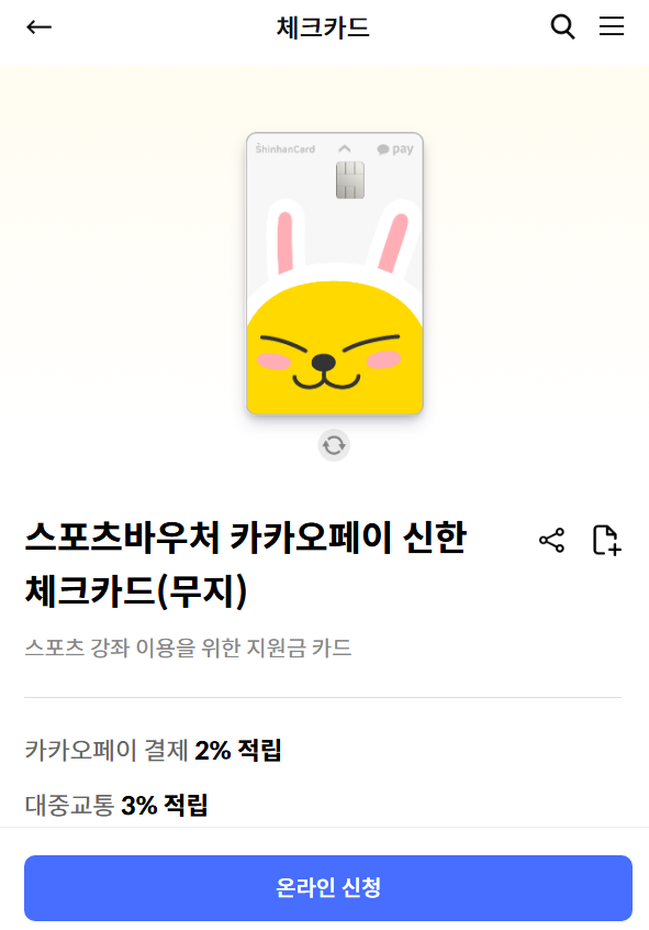 - 신한카드 스포츠바우처 카카오페이 카드를 발급 받아야합니다.