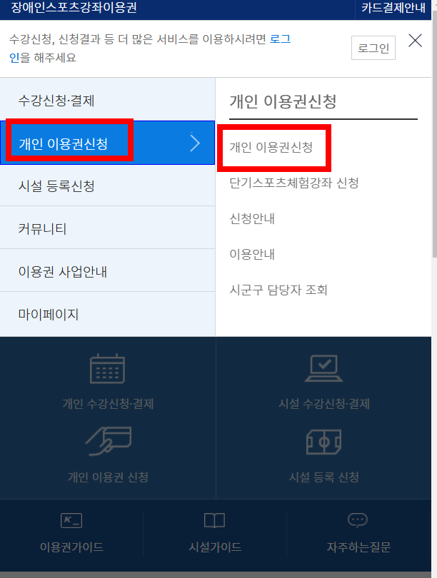 - 스포츠강좌이용권 사이트에서 온라인 신청이 가능합니다.