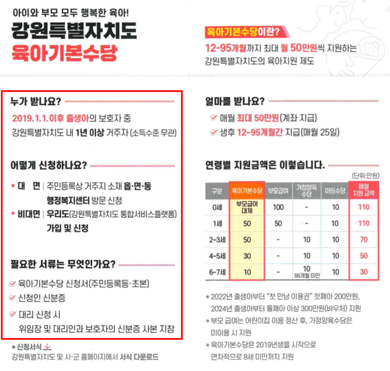 - 거주 요건: 강원도 내 1년 이상 거주한 부모와 아동.